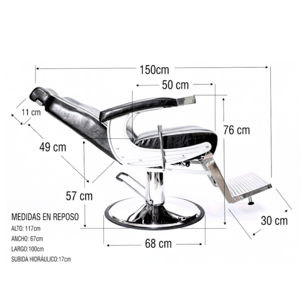 - Sillón barbero clásico robusto 90kg.