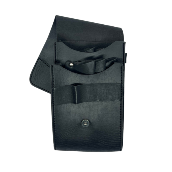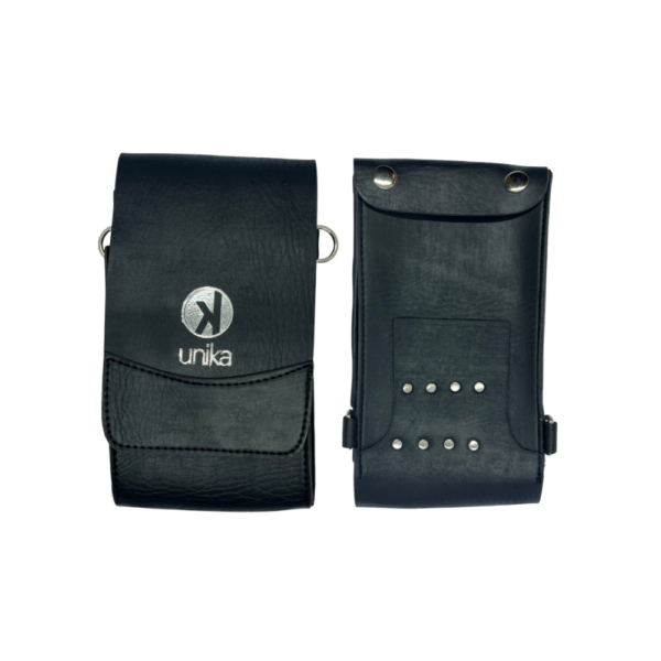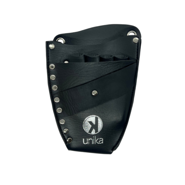 La Bandolera Portaherramientas UNIKA con solapa permite transportar tijeras y accesorios de forma organizada y segura. Fabricada en cuero resistente, ofrece comodidad, protección y estilo profesional.