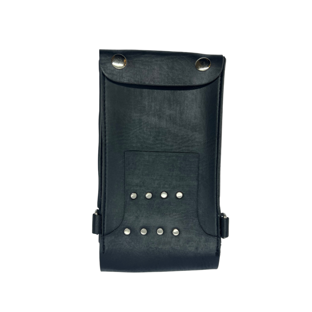 En la parte trasera integra un sistema reforzado con remaches metálicos y anclajes laterales que permiten sujetarla al cinturón o utilizarla con correa tipo bandolera, adaptándose a las preferencias y comodidad del profesional.