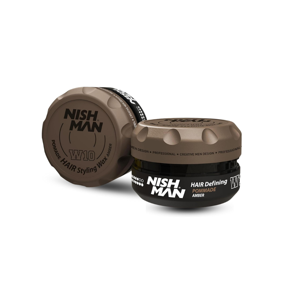 La Cera Styling Matte Amber NISHMAN W10 (100 ml) con fijación media y brillo medio-alto. Aporta definición, flexibilidad y aroma sofisticado sin dejar residuos.