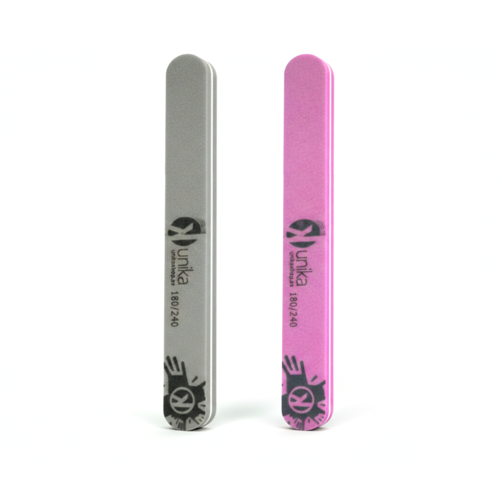 La Lima Pulidora Clásica 180/240 UNIKA de fibra de vidrio. Suaviza imperfecciones y aporta brillo natural con sus dos gramajes. Acabado profesional en gris o rosa.