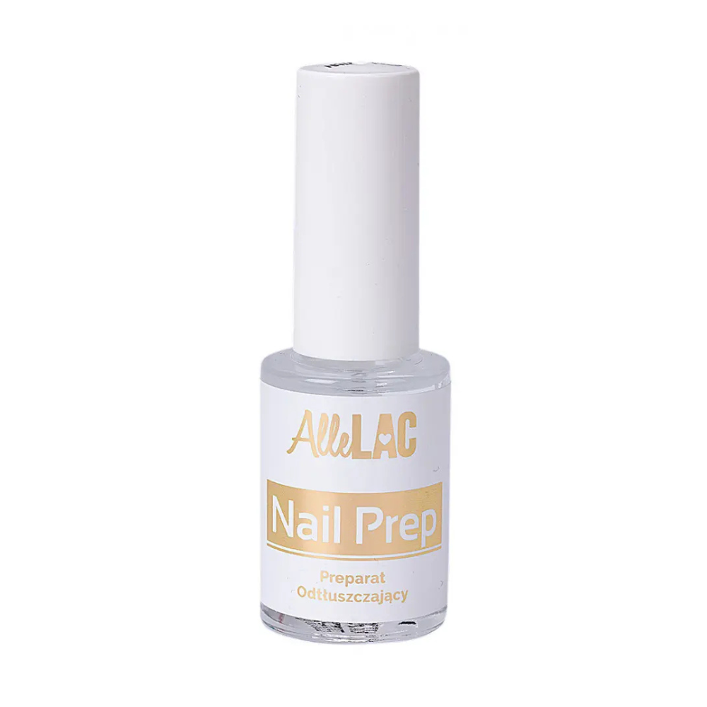 El Nail Prep ALLE LAC es un preparador profesional esencial para garantizar una adhesión perfecta del esmalte semipermanente, gel o acrílico. Su fórmula elimina eficazmente la humedad y la grasa natural de la superficie de la uña, creando la base ideal para un esmaltado duradero y resistente.