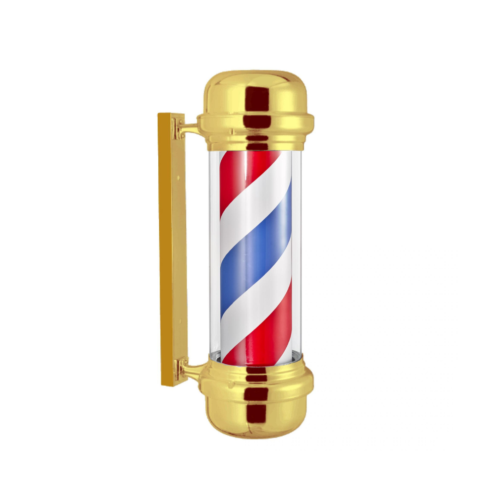 El Polo Barbero ORO con luz giratoria aporta visibilidad, estilo clásico y un toque profesional a tu barbería.