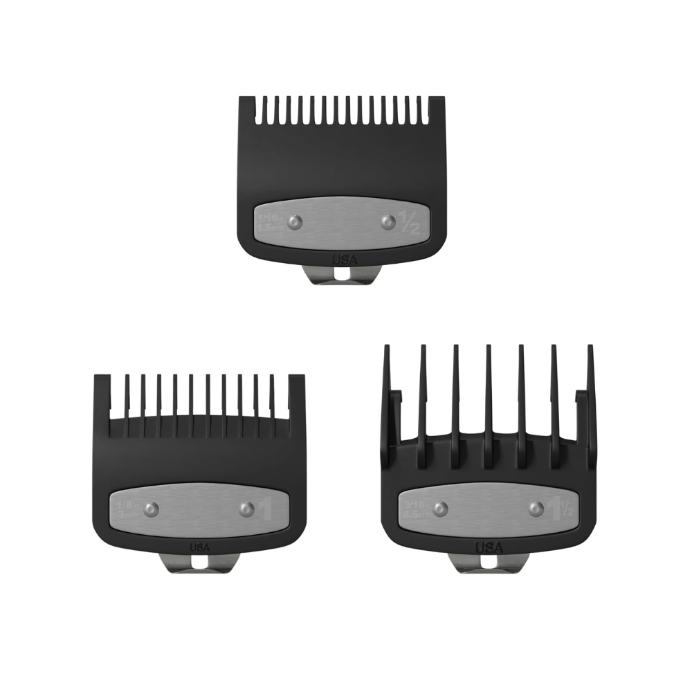 El Realce Juego 1.5mm/3mm/4.5mm THE SHAVE FACTORY compatible con WAHL es una solución práctica y profesional para lograr cortes precisos, degradados definidos y acabados uniformes. Diseñados con un enfoque ergonómico, estos peines garantizan un manejo cómodo y eficiente, facilitando el trabajo continuo en barberías y peluquerías.