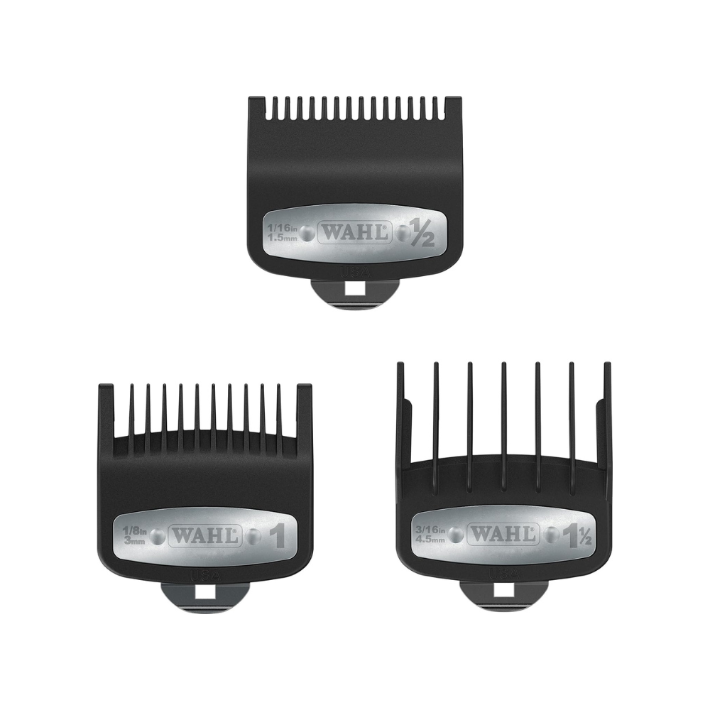 El Realce Juego 1.5mm/3mm/4.5mm WAHL permite lograr cortes precisos y degradados perfectos en trabajos de detalle. Fabricados en material resistente con clips metálicos, ofrecen ajuste seguro y deslizamiento suave, ideales para uso profesional.