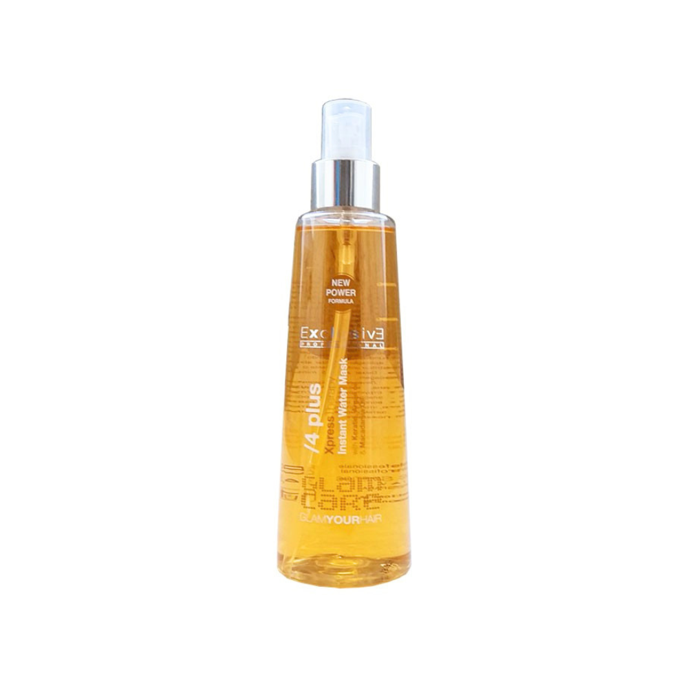 El Spray ACONDICIONADOR Instantáneo EXCLUSIVE Professional (Glam Care Xpress Therapy Instant Water) ofrece una reconstrucción rápida y profunda del cabello. Enriquecido con argán, queratina y espirulina, aporta suavidad y brillo al instante. Ideal para cabellos dañados o sin vida. No necesita aclarado.